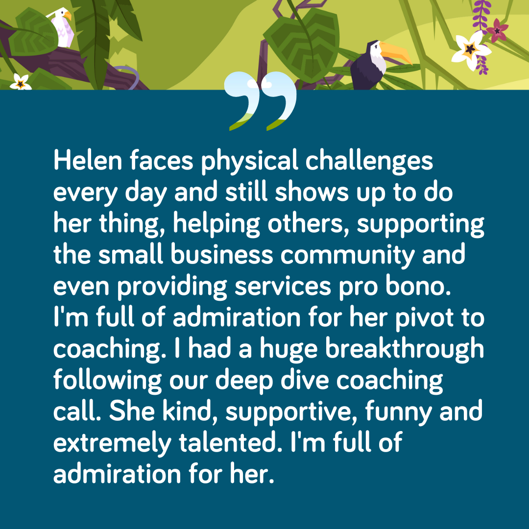 Helen provided a coaching session to guide me through my next stage of business development. I came away with pages and pages of ideas that I can't wait to put into action now. Her resources, experience and coaching style provides a perfect base for growing your business.